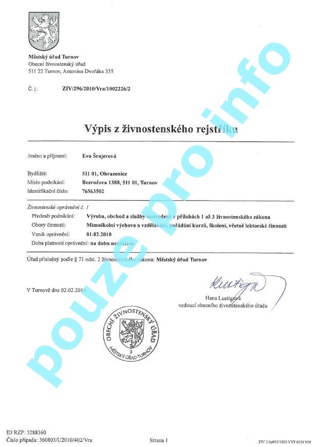 Sídlo: Bezručova 1388, TURNOV 511 01