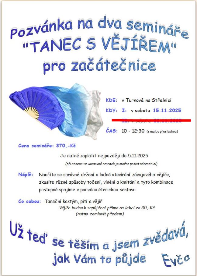 Tanečnice, dovolte mi, abych Vás pozvala na dva semináře